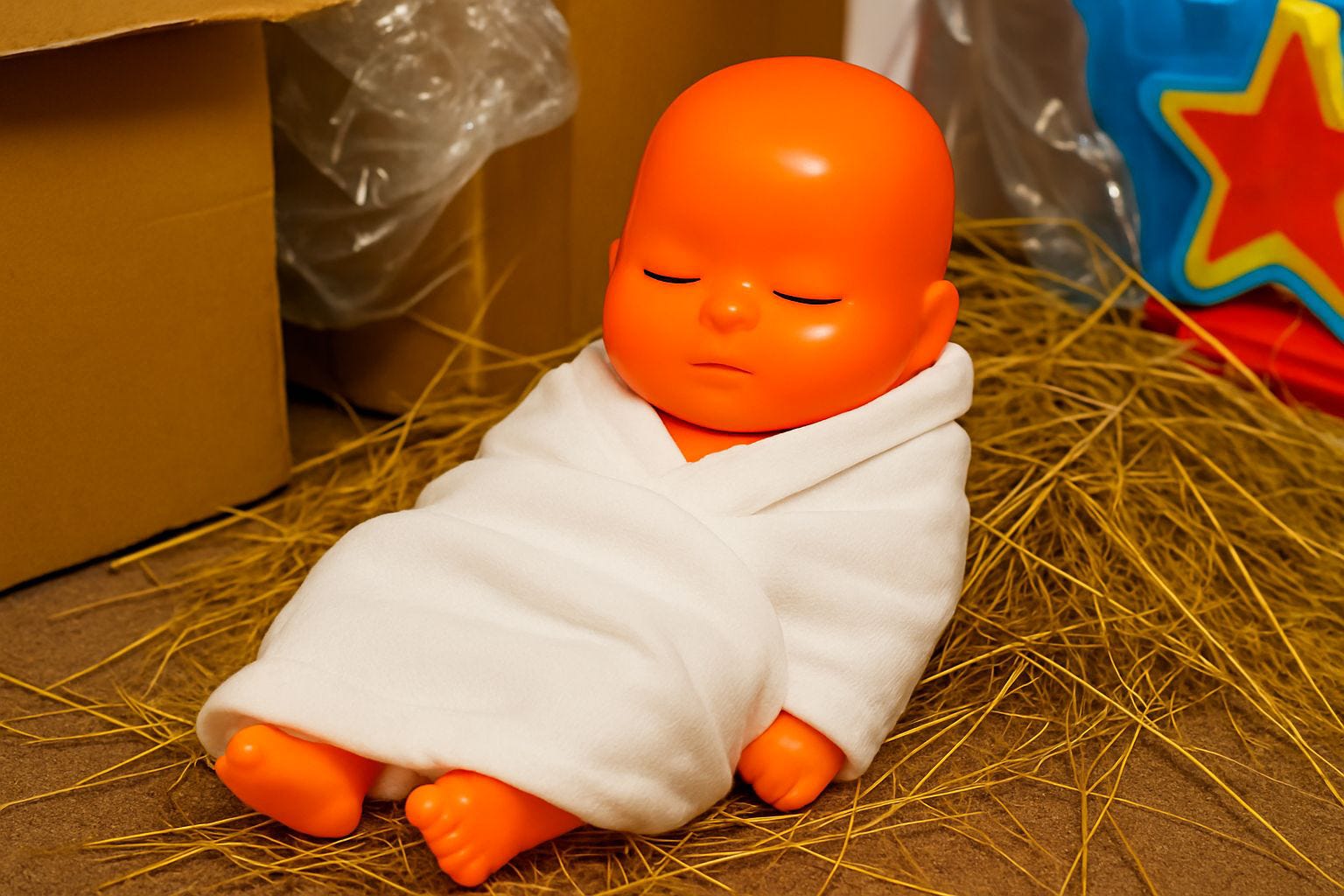 A plastic baby doll portraying the real infant Jesus accurately symbolizes plastic rightwing Christianity. And that plastic will pollute the environment and minds for generations.